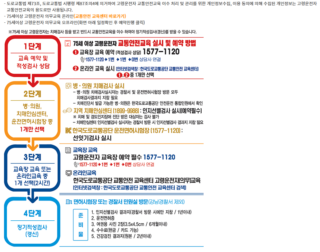 - 교육 이수 후 이수증 제출해야 면허 갱신 가능